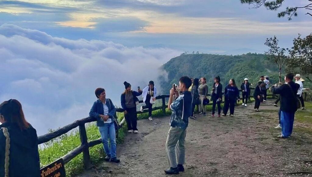 บรรยากาศบนยอดอุทยานแห่งชาติภูเรือ จังหวัดเลย ยังคงคึกคักไปด้วยนักท่องเที่ยวจำนวนมากที่เดินทางขึ้นมาสัมผัสอากาศหนาวเย็นยามเช้า พร้อมชื่นชมความงดงามของทะเลหมอกสีขาวนวล ที่ลอยอ้อยอิ่งเหนือหุบเขาและเก็บภาพประทับใจของแสงแรกแห่งวัน ที่ค่อยๆ สาดส่องเหนือยอดภูอย่างงดงามจับตา