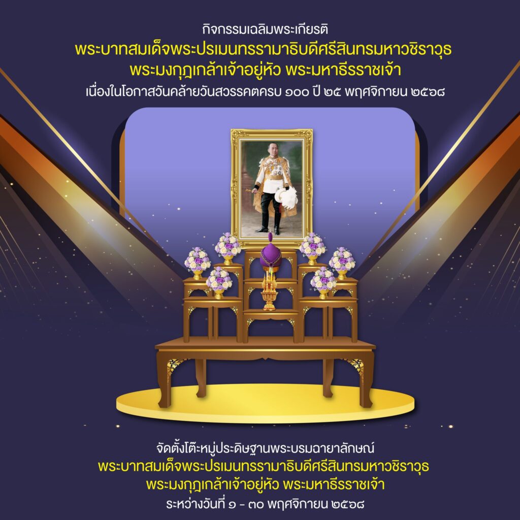 รัฐบาลจัดงานเฉลิมพระเกียรติพระบาทสมเด็จพระปรเมนทรรามาธิบดีศรีสินทรมหาวชิราวุธ พระมงกุฎเกล้าเจ้าอยู่หัว พระมหาธีรราชเจ้า เนื่องในโอกาสวันคล้ายวันสวรรคตครบ 100 ปี 25 พฤศจิกายน 2568 และ เฉลิมพระเกียรติสมเด็จพระเจ้าบรมวงศ์เธอ เจ้าฟ้าเพชรรัตนราชสุดา สิริโสภาพัณณวดี กรมพระนครปฐมบรมขัตติยานี มหาธีรราชธิดา เนื่องในโอกาสวันคล้ายวันประสูติครบ 100 ปี 24 พฤศจิกายน 2568 โดยวันที่ 24 พฤศจิกายน 2568 จัดพิธีเจริญพระพุทธมนต์และทำบุญตักบาตรถวายพระราชกุศล เวลา 07.30 น. ส่วนกลางจัดพิธี ณ วัดพระปฐมเจดีย์ จังหวัดนครปฐม พระสงฆ์ จำนวน 100 รูป มีนายกรัฐมนตรีเป็นประธานในพิธี ส่วนภูมิภาคทุกจังหวัด จัดพิธีระหว่างวันที่ 24 – 25 พฤศจิกายน ณ สถานที่ที่ประดิษฐานพระบรมราชานุสาวรีย์พระบาทสมเด็จพระปรเมนทรรามาธิบดีศรีสินทรมหาวชิราวุธ พระมงกุฎเกล้าเจ้าอยู่หัว พระมหาธีรราชเจ้า และศาลากลางจังหวัด ต่างประเทศสถานเอกอัครราชทูตและสถานกงสุล และหน่วยงานภาครัฐ และภาคเอกชนทั่วไป ณ สถานเอกอัครราชทูตและสถานกงสุล