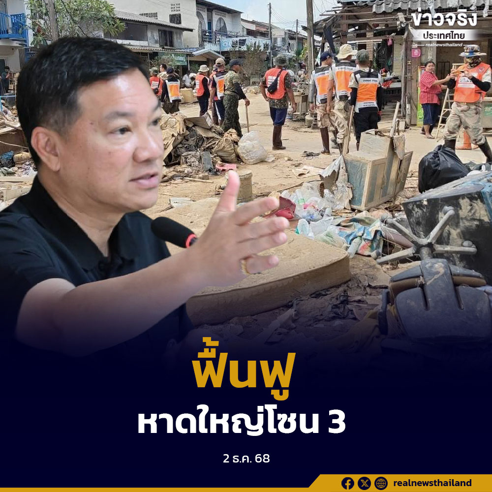 โดยสั่งการให้ทีมกระทรวงมหาดไทยรับผิดชอบพื้นที่ฟื้นฟูนครหาดใหญ่โซน 3 ตั้งแต่ถนนทางหลวงชนบท 2029 ถึงคลองอู่ตะเภา ระยะทาง 8.5 กิโลเมตร พร้อมซอยย่อยรวมระยะทาง 55 กิโลเมตร จัดทำแผนที่โซนละเอียดและมอบหมายภารกิจให้หัวหน้าโซนย่อยแต่ละพื้นที่ โดยมอบหมายให้นายชัยรัตน์ แก้วเพียงเพ็ญ รองอธิบดีกรมป้องกันและบรรเทาสาธารณภัย เป็นหัวหน้าเจ้าหน้าที่ควบคุมเครื่องจักรกลสาธารณภัย กรมโยธาธิการและผังเมือง และกำลังพล อส. จำนวน 4,012 นาย พร้อมเจ้าหน้าที่ที่เกี่ยวข้องทั้งหมด