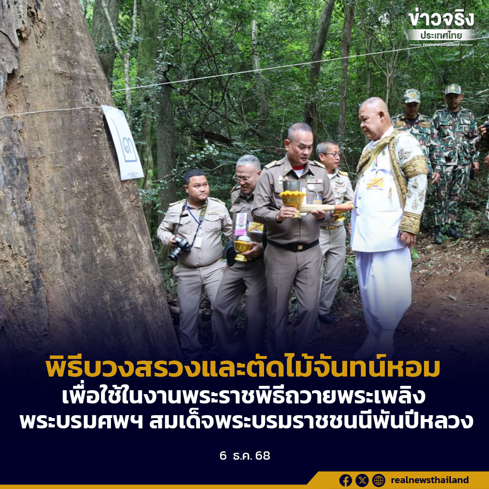 พระบาทสมเด็จพระเจ้าอยู่หัว ทรงพระกรุณาโปรดเกล้าฯ ให้ พลอากาศเอก จารึก สนิทวงศ์ ณ อยุธยา นายทหารปฏิบัติการพิเศษ สำนักงานนายทหารปฏิบัติการพิเศษในพระองค์ เป็นประธานพิธีบวงสรวงและตัดไม้จันทน์หอมเพื่อใช้ในงานพระราชพิธีถวายพระเพลิงพระบรมศพ สมเด็จพระนางเจ้าสิริกิติ์ พระบรมราชินีนาถพระบรมราชชนนีพันปีหลวง ที่มณฑลพิธี อุทยานแห่งชาติกุยบุรี จ.ประจวบคีรีขันธ์ วันนี้ 6 ธ.ค. 68 เวลา 12.19 น. ในการนี้ นายฉัตรชัย ปิ่นเงิน หัวหน้างานโหรพราหมณ์  เป็นผู้อ่านโองการบวงสรวง โดยมี นายสุชาติ ชมกลิ่น รองนายกรัฐมนตรีและรัฐมนตรีว่าการกระทรวงทรัพยากรธรรมชาติและสิ่งแวดล้อม  นายพนมบุตร จันทรโชติ อธิบดีกรมศิลปากร นายอรรถพล เจริญชันษา อธิบดีกรมอุทยานแห่งชาติ สัตว์ป่า และพันธุ์พืช  นายสิทธิชัย สวัสดิ์แสน ผู้ว่าราชการจังหวัดประจวบคีรีขันธ์  หัวหน้าส่วนราชการ และประชาชนจากทุกภาคส่วนร่วมพิธี โดย พลอากาศเอก จารึก สนิทวงศ์ ณ อยุธยา ประธานในพิธี จุดเทียนเงิน เทียนทอง และธูป บนโต๊ะเครื่องบวงสรวง และปักธูปบริวารที่เครื่องสังเวย จากนั้น หัวหน้างานโหรพราหมณ์ อ่านโองการบวงสรวง เจ้าพนักงานไกวบัณเฑาะว์ ลั่นฆ้อง เสร็จแล้ว พลอากาศเอก จารึก สนิทวงศ์ ณ อยุธยา ประธานในพิธี เดินไปยังต้นจันทน์หอมต้นที่ 1 ต้นที่ 2 และต้นที่ 3 หลั่งน้ำเทพมนต์บริเวณต้นจันทน์หอมและขวานสำหรับใช้ตัดต้นจันทน์หอม ก่อนใช้ขวานฟันเป็นปฐมฤกษ์ โปรยดอกไม้บริเวณรอบต้นจันทน์หอมและเครื่องสังเวย  เป็นอันเสร็จพิธี