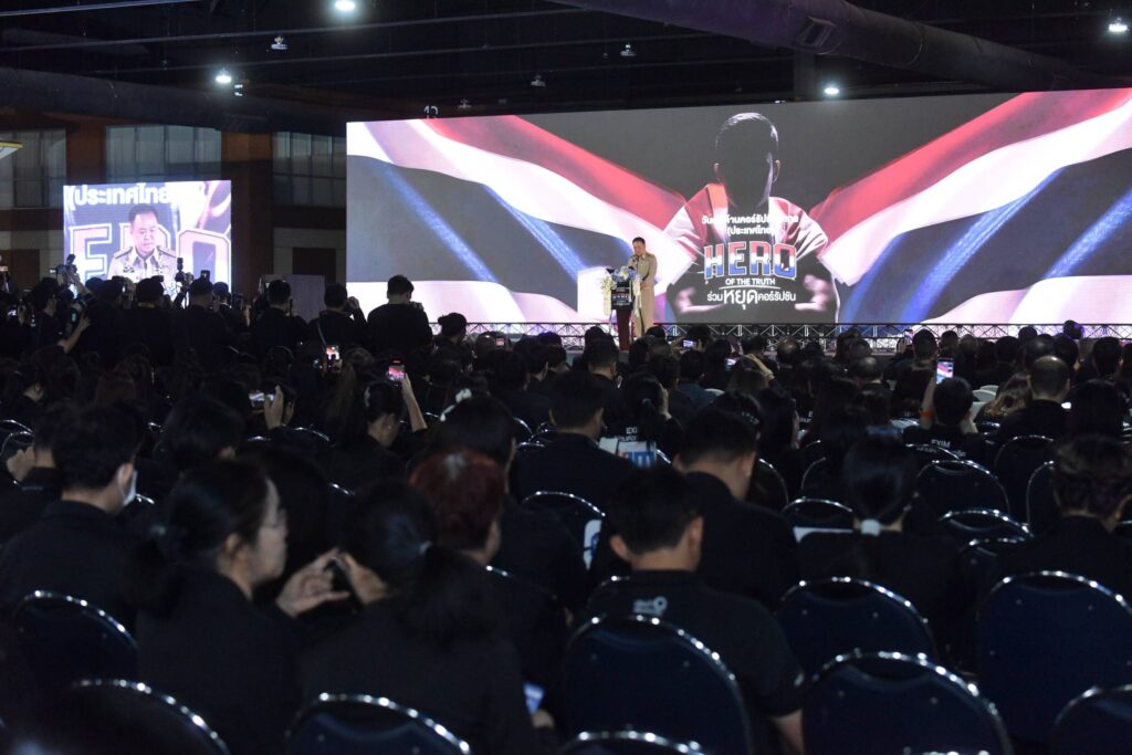 จากนั้น นายกรัฐมนตรีแสดงสัญลักษณ์ต่อต้านการทุจริต โดยการเปิดผ้าคลุมสัญลักษณ์ “HERO OF THE TRUTH ร่วมหยุดคอร์รัปชัน” เพื่อเป็นการแสดงเจตนารมณ์อย่างแน่วแน่ของทุกหน่วยงานในการต่อต้านการทุจริตคอร์รัปชันไม่ว่าจะเป็นในรูปแบบใด