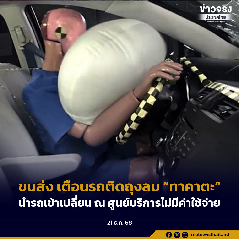 กรมการขนส่งทางบก เตือนรถยนต์ที่ติดตั้งถุงลมนิรภัยยี่ห้อ “ทาคาตะ” กว่า 500,000 คันให้นำรถเข้าเปลี่ยน ณ ศูนย์บริการรถยนต์ทั่วประเทศโดยไม่มีค่าใช้จ่าย