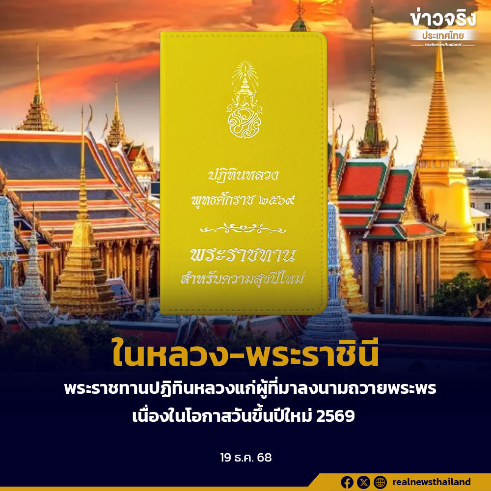 พระบาทสมเด็จพระเจ้าอยู่หัว และสมเด็จพระนางเจ้าฯ พระบรมราชินี ทรงพระกรุณาโปรดเกล้าฯ พระราชทานปฏิทินหลวง พุทธศักราช ๒๕๖๙ แก่ผู้ที่มาลงนามถวายพระพร เนื่องในโอกาสวันขึ้นปีใหม่ พุทธศักราช ๒๕๖๙ สำนักพระราชวัง วันพฤหัสบดีที่ ๑ มกราคม ๒๕๖๙