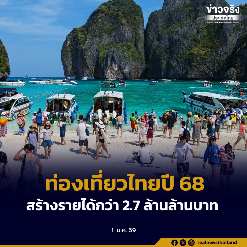 กระทรวงการท่องเที่ยวและกีฬา เปิดเผยสถิตินักท่องเที่ยวสะสมตลอดปี 2568 (1 มกราคม – 31 ธันวาคม) พบว่าอุตสาหกรรมการท่องเที่ยวไทยยังคงเป็นกลไกหลักในการขับเคลื่อนเศรษฐกิจ แม้จะมีการชะลอตัวลงเล็กน้อยในบางตลาด แต่สามารถทำรายได้รวมจากทั้งนักท่องเที่ยวต่างชาติและชาวไทยเที่ยวไทยไปได้กว่า 2.7 ล้านล้านบาท โดยในปีที่ผ่านมา ประเทศไทยต้อนรับนักท่องเที่ยวต่างชาติรวมทั้งสิ้น 32,974,321 คน (ลดลง ร้อยละ 7.23 เมื่อเทียบกับปีก่อน) สร้างรายได้จากตลาดต่างประเทศ 1,536,574 ล้านบาท