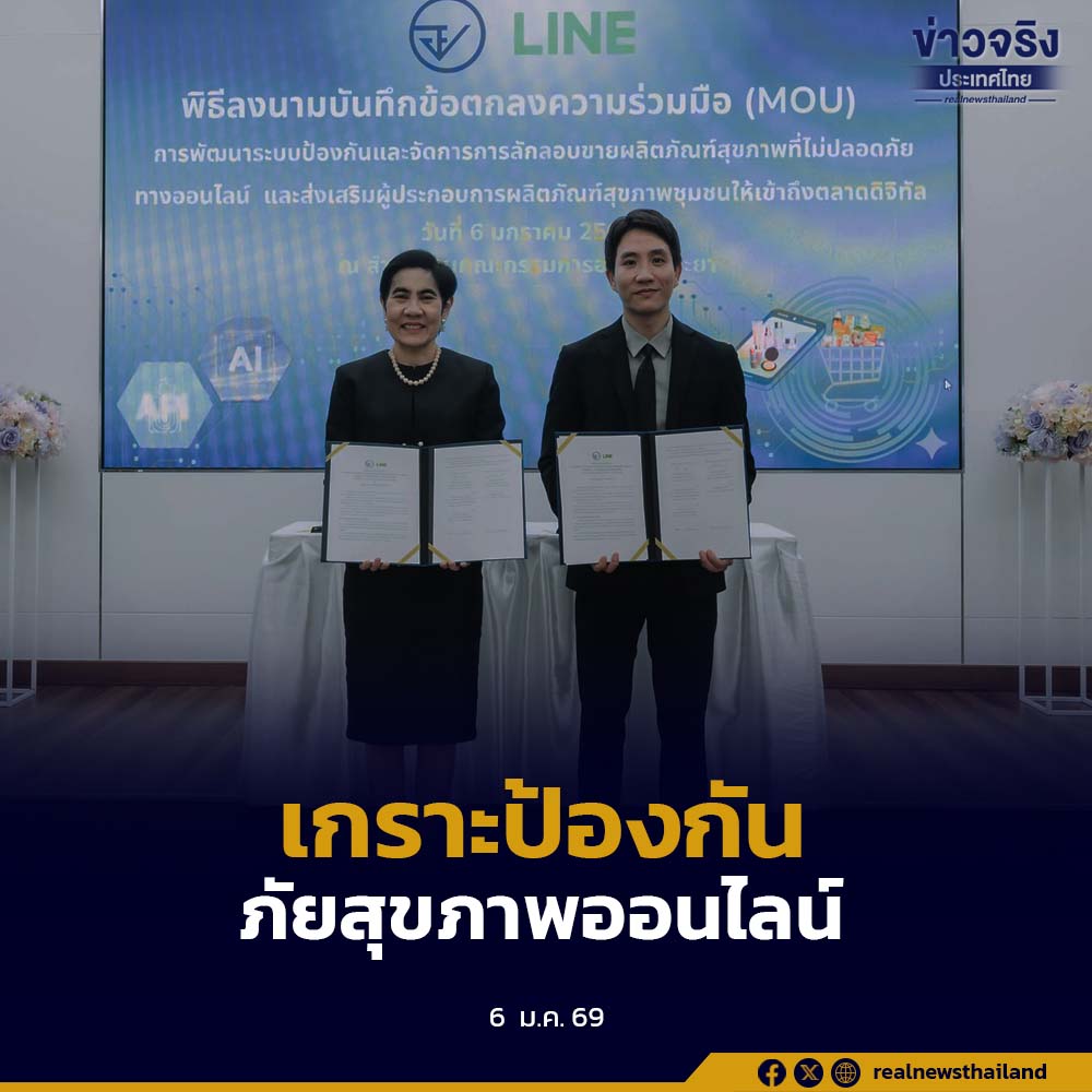 เภสัชกรหญิงสุภัทรา บุญเสริม เลขาธิการคณะกรรมการอาหารและยา และนายรัฐธีร์ ฉัตรดำรงค์ศักดิ์ รองประธานเจ้าหน้าที่ฝ่ายการพาณิชย์ บริษัท ไลน์ คอมพานี (ประเทศไทย) จำกัด ร่วมลงนามสำนักงานคณะกรรมการอาหารและยา (อย.) ลงนามบันทึกข้อตกลงความร่วมมือ เพื่อยกระดับการป้องกันและจัดการการลักลอบจำหน่ายผลิตภัณฑ์สุขภาพที่ไม่ปลอดภัยบนแพลตฟอร์มออนไลน์ ควบคู่กับการส่งเสริมผู้ประกอบการผลิตภัณฑ์สุขภาพชุมชนให้เข้าถึงตลาดดิจิทัลได้ง่ายขึ้น