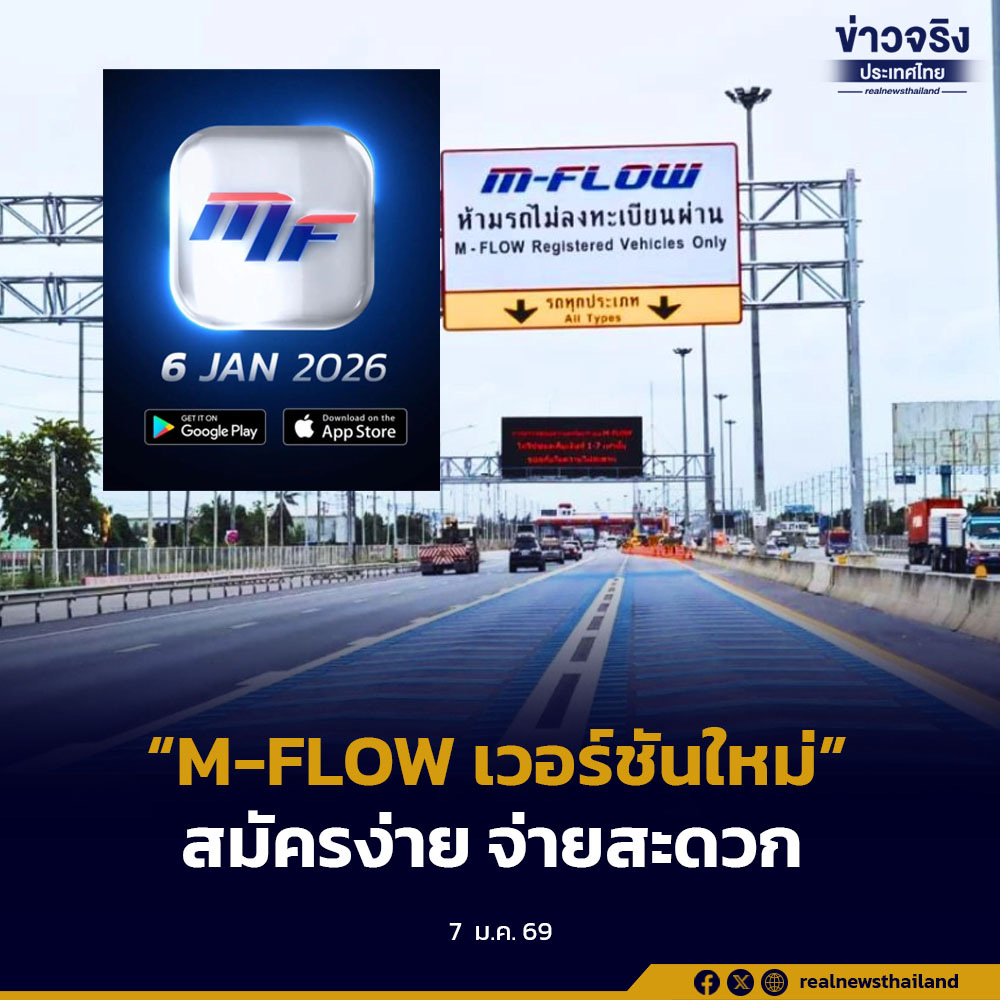 ระบบ M-Flow ช่วยให้ผู้ใช้ทางผ่านด่านเก็บค่าผ่านทางได้โดยไม่ต้องหยุดรถ ไม่ต้องใช้เงินสดหรือรับบัตรผ่านทาง ประชาชนสามารถดาวน์โหลดและลงทะเบียนใช้งานแอปฯ “MFlowThai” เวอร์ชันใหม่ ได้ทั้งระบบ iOS , Android และเว็บไซต์ www.mflowthai.com ตั้งแต่วันที่ 6 มกราคม 2569 เป็นต้นไป