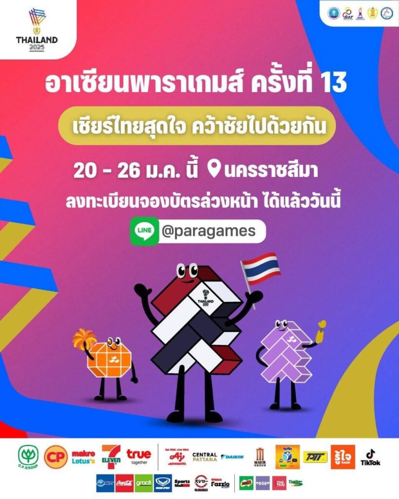 ขอเชิญชวนพี่น้องชาวไทย ร่วมเป็นส่วนหนึ่งในความภาคภูมิใจ และส่งกำลังใจให้ทัพนักกีฬาคนพิการทีมชาติไทย ในการแข่งขันกีฬาอาเซียนพาราเกมส์ ครั้งที่ 13 “เชียร์ไทยสุดใจ คว้าชัยไปด้วยกัน”