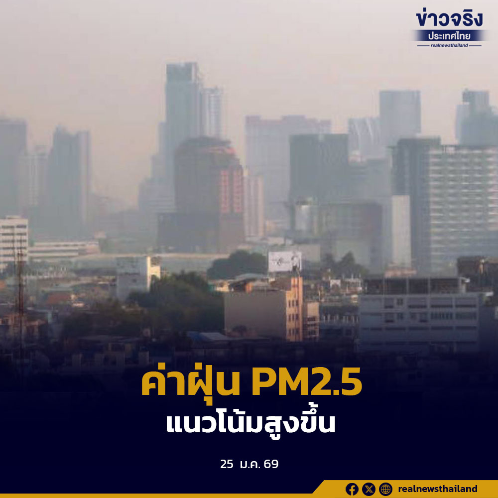 ศูนย์สื่อสารการแก้ไขปัญหามลพิษทางอากาศ (ศกพ.) กรมควบคุมมลพิษ (คพ.) ติดตามสถานการณ์ฝุ่นละอองขนาดเล็ก PM2.5 ในพื้นที่กรุงเทพมหานครและปริมณฑล วันนี้ (25 ม.ค.69) หลายพื้นที่ค่าฝุ่นเกณ์มาตรฐานในระดับสีส้มเริ่มมีผลกระทบต่อสุขภาพ คือ ต.มหาชัย อ.เมือง จ.สมุทรสาคร ต.อ้อมน้อย อ.กระทุ่มแบน จ.สมุทรสาคร ต.ปากน้ำ อ.เมือง จ.สมุทรปราการ ต.บางพูด อ.ปากเกร็ด จ.นนทบุรี ต.นครปฐม อ.เมือง จ.นครปฐม แขวงคลองเตย เขตคลองเตย ริมถนนศรีนครินทร์ เขตประเวศ ริมถนนเลียบวารี เขตหนองจอก ริมถนนลาดกระบัง เขตลาดกระบัง แยกสวนสยาม-รามอินทรา เขตคันนายาว ริมถนนสุขาภิบาล5 เขตสายไหม ริมถนนนราธิวาส เขตบางรัก ริมถนนพระรามที่ 4 หน้าสามย่านมิตรทาวน์ เขตปทุมวัน ริมถนนกรุงเกษม เขตป้อมปราบศัตรูพ่าย ริมถนนสุขุมวิท เขตพระโขนง สวนเสรีไทย เขตบึงกุ่ม และเขตคลองสามวา เนื่องจากสภาพอากาศเริ่มปิดและมีลมนิ่ง ส่งผลให้ฝุ่นละอองระบายออกจากพื้นที่ได้ค่อนข้างยาก คาดการณ์ช่วงวันที่ 26 มกราคม – 1 กุมภาพันธ์นี้ มีแนวโน้มค่าฝุ่นจะสูงขึ้น จึงจำเป็นต้องเฝ้าระวังอย่างใกล้ชิด