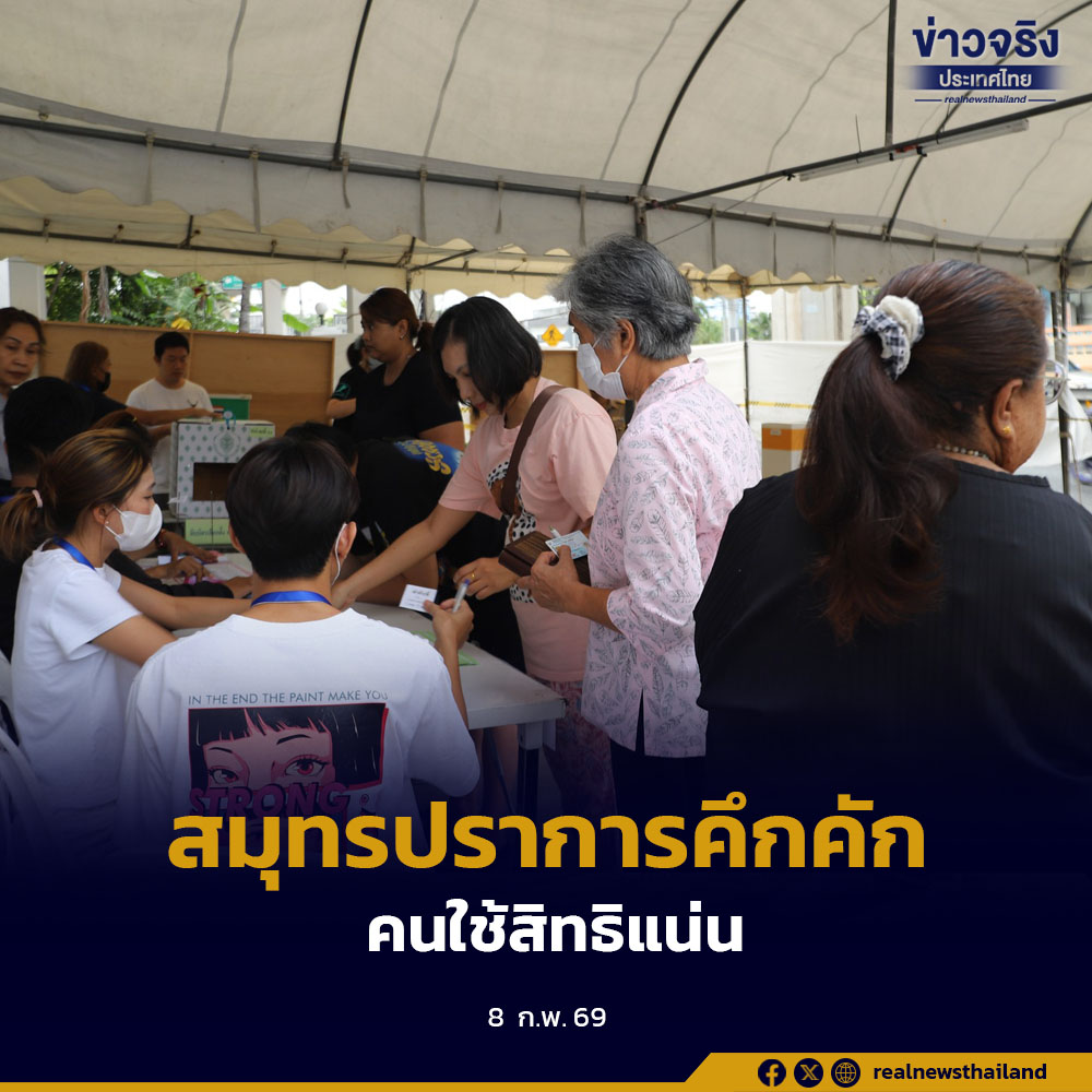 บรรยากาศการใช้สิทธิเลือกตั้งสมาชิกสภาผู้แทนราษฎรและการออกเสียงประชามติในพื้นที่จังหวัดสมุทรปราการเป็นไปอย่างคึกคักภายหลังเปิดหีบในเวลา 08.00 น. ประชาชนทยอยเดินทางไปใช้สิทธิ ณ หน่วยเลือกตั้งตามรายชื่ออย่างต่อเนื่อง