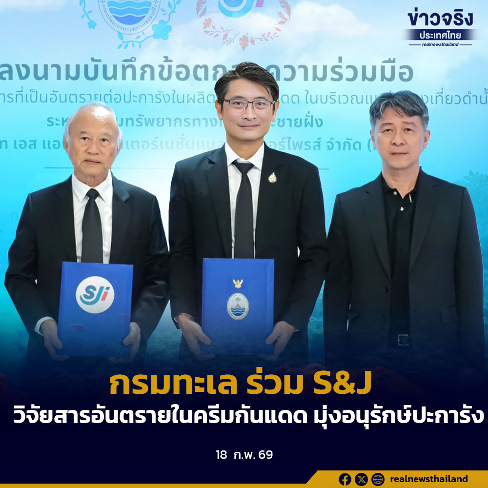 ดร.ปิ่นสักก์ สุรัสวดี อธิบดีกรมทรัพยากรทางทะเลและชายฝั่ง (ทช.) พร้อมด้วย นายธีระศักดิ์ วิกิตเศรษฐ์ กรรมการผู้จัดการบริษัท เอส แอนด์ เจ อินเตอร์เนชั่นแนล เอนเตอร์ไพรส์ จำกัด (มหาชน) ร่วมลงนามบันทึกข้อตกลงความร่วมมือทางการสำรวจ วิจัย สารที่เป็นอันตรายต่อปะการังในผลิตภัณฑ์กันแดดบริเวณแหล่งท่องเที่ยวดำน้ำ ณ ห้องประชุมลำแพน กรมทรัพยากรทางทะเลและชายฝั่ง เพื่อศึกษา วิจัย สารที่เป็นอันตรายต่อปะการังในผลิตภัณฑ์กันแดดในแหล่งท่องเที่ยว แหล่งดำน้ำ ให้เกิดความปลอดภัยทั้งต่อผู้บริโภค ปะการัง และสิ่งแวดล้อมทางทะเล ตลอดจนร่วมกันรณรงค์เผยแพร่ และประชาสัมพันธ์ให้แก่ผู้บริโภค นักท่องเที่ยว รวมถึงผู้เกี่ยวข้องให้ตระหนักและร่วมกันลดผลกระทบจากกิจกรรมการท่องเที่ยวทางทะเลอย่างเป็นรูปธรรม อันจะส่งผลให้แนวปะการังของประเทศไทยได้รับการฟื้นฟูและเป็นแหล่งรายได้ที่ยั่งยืนของประเทศในอนาคต