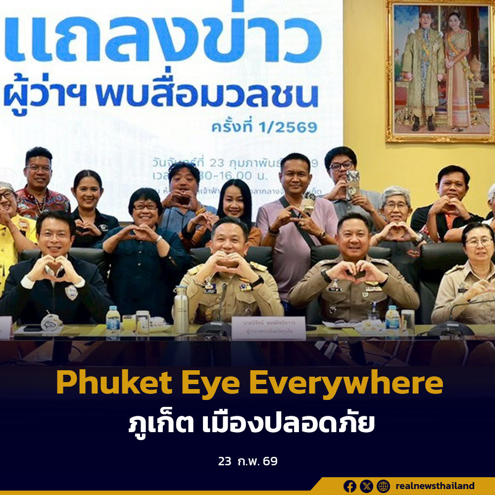 จังหวัดภูเก็ตแถลงข่าวเดินหน้ายกระดับมาตรการรักษาความปลอดภัยในพื้นที่เมืองท่องเที่ยวระดับนานาชาติ เปิดตัวความคืบหน้า “โครงการยกระดับระบบรักษาความปลอดภัย เพื่อให้บริการแก่นักท่องเที่ยว และประชาชนในพื้นที่จังหวัดภูเก็ต (PHUKET EYE)” ภายใต้แนวคิด “Phuket Eye Everywhere – ภูเก็ต เมืองปลอดภัย” ในกิจกรรมผู้ว่าราชการจังหวัดพบสื่อมวลชน