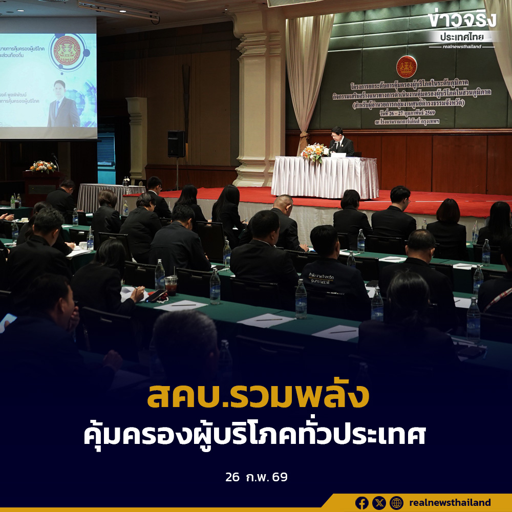 นายรณรงค์ พูลพิพัฒน์ เลขาธิการคณะกรรมการคุ้มครองผู้บริโภค เป็นประธานเปิดกิจกรรม “เสริมสร้างแนวทางการดำเนินงานคุ้มครองผู้บริโภคในส่วนภูมิภาค” ภายใต้โครงการยกระดับการคุ้มครองผู้บริโภคในส่วนภูมิภาค ณ โรงแรมรามาการ์เด้นส์ กรุงเทพมหานคร ระหว่างวันที่ 26–27 กุมภาพันธ์ 2569 โดยมีผู้อำนวยการกลุ่มงานศูนย์ดำรงธรรมจังหวัดจากทั้ง 76 จังหวัดทั่วประเทศเข้าร่วมอย่างพร้อมเพรียง เพื่อ “รีเซ็ตมาตรฐาน” งานคุ้มครองผู้บริโภคทั้งระบบ ให้ส่วนกลางและส่วนภูมิภาคเดินไปในทิศทางเดียวกัน ด้วยความชัดเจนด้านนโยบาย กระบวนการทำงานและเป้าหมายร่วม
