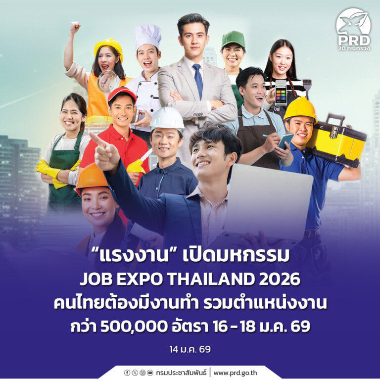 “แรงงาน” เปิดมหกรรม JOB EXPO THAILAND 2026 คนไทยต้องมีงานทำ รวมตำแหน่งงานกว่า 500,000 อัตรา 16-18 ม.ค. 69 14 มกราคม 2026 อ่านต่อ ...