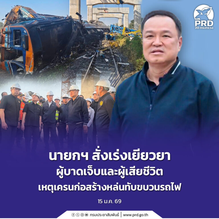 นายกฯ สั่งเร่งเยียวยาผู้บาดเจ็บและผู้เสียชีวิต เหตุเครนก่อสร้างหล่นทับขบวนรถไฟ 15 มกราคม 2026 อ่านต่อ ...