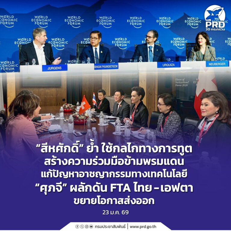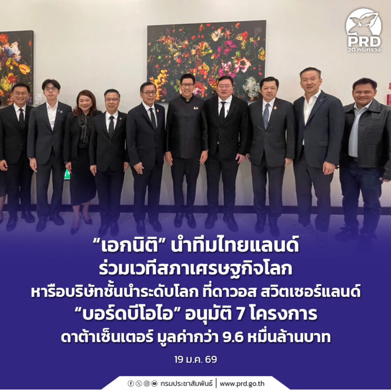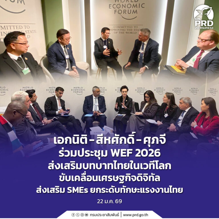 เอกนิติ – สีหศักดิ์ – ศุภจี ร่วมประชุม WEF 2026 ส่งเสริมบทบาทไทยในเวทีโลก ขับเคลื่อนเศรษฐกิจดิจิทัล ส่งเสริม SMEs ยกระดับทักษะแรงงานไทย 22 มกราคม 2026 อ่านต่อ ...