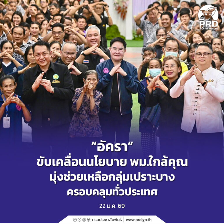 “อัครา” ขับเคลื่อนนโยบาย พม.ใกล้คุณ มุ่งช่วยเหลือกลุ่มเปราะบางครอบคลุมทั่วประเทศ 22 มกราคม 2026 อ่านต่อ ...