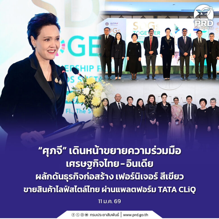“ศุภจี” เดินหน้าขยายความร่วมมือเศรษฐกิจไทย-อินเดีย ผลักดันธุรกิจก่อสร้าง เฟอร์นิเจอร์ สีเขียว ขายสินค้าไลฟ์สไตล์ไทย ผ่านแพลตฟอร์ม TATA CLiQ 11 มกราคม 2026 อ่านต่อ ...
