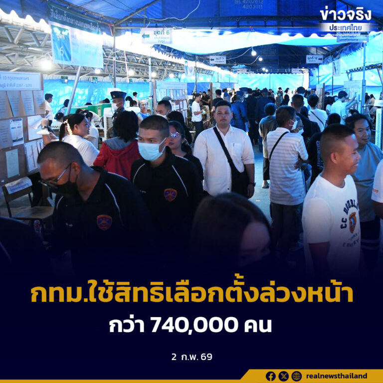 กทม.ผู้ออกมาใช้สิทธิเลือกตั้งล่วงหน้านอกเขตเลือกตั้งกว่า 740,000 คน สะท้อนถึงความตื่นตัว 2 กุมภาพันธ์ 2026 อ่านต่อ ...