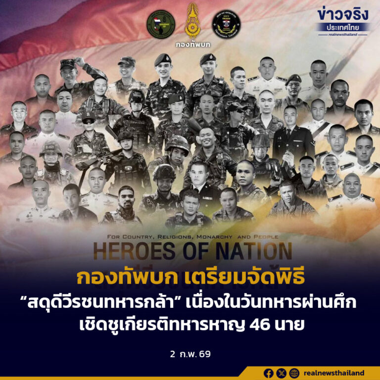 กองทัพบก เตรียมจัดพิธี “สดุดีวีรชนทหารกล้า”เนื่องในวันทหารผ่านศึก เชิดชูเกียรติทหารหาญ 46 นาย 2 กุมภาพันธ์ 2026 อ่านต่อ ...