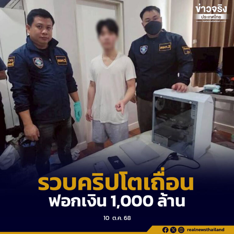 รวบเครือข่ายบริษัทคริปโตเถื่อน ฟอกเงินให้แก๊งคอลเซ็นเตอร์ หมุนเวียนกว่า 1,000 ล้านต่อเดือน 10 ตุลาคม 2025 อ่านต่อ ...