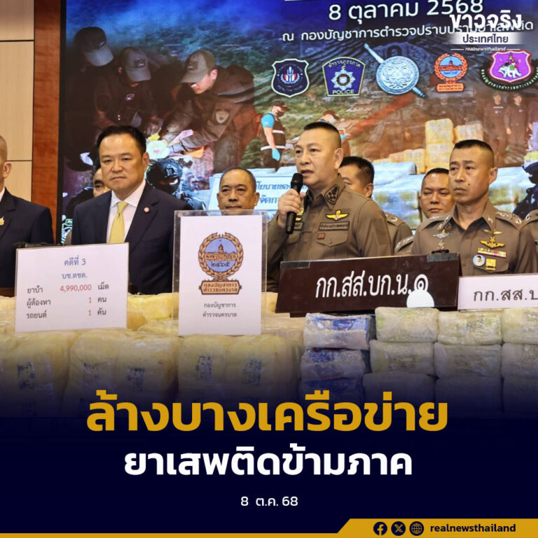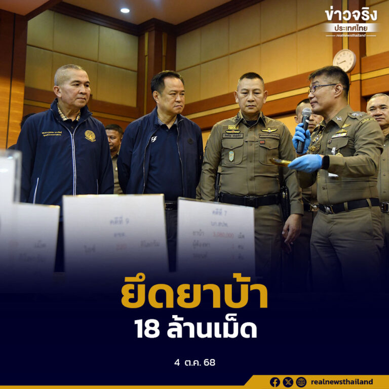 นายกฯ อนุทิน นำแถลงผลปฏิบัติการปราบปรามยาเสพติด “ยุทธการสกัดยานรก” ยึดยาบ้ากว่า 18 ล้านเม็ด พร้อมทลายเครือข่ายรายสำคัญ เดินหน้ายกระดับปราบปรามเต็มกำลัง 4 ตุลาคม 2025 อ่านต่อ ...