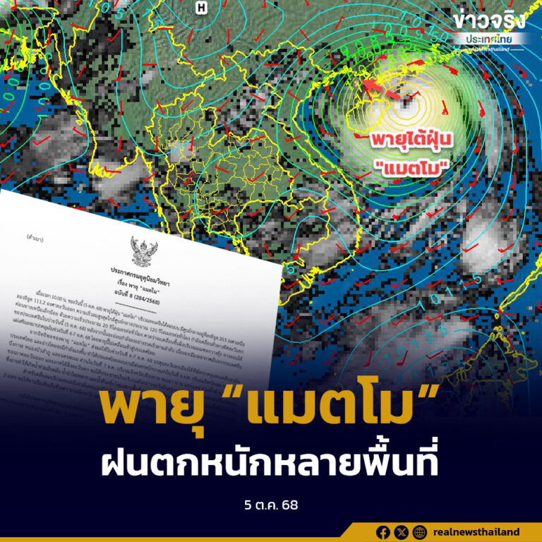 พายุ “แมตโม” 6-7 ตุลาคมนี้ ฝนตกหนักหลายพื้นที่ภาคตะวันออกเฉียงเหนือและภาคเหนือ 5 ตุลาคม 2025 อ่านต่อ ...
