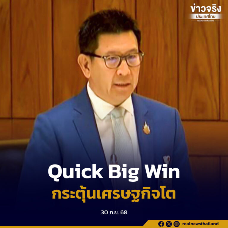 เดินหน้า Quick Big Win 5 ด้าน กระตุ้นเศรษฐกิจให้โตสูงกว่าร้อยละ 0.3 หนี้ครัวเรือนต่ำกว่าร้อยละ 87.4 30 กันยายน 2025 อ่านต่อ ...