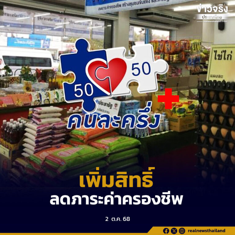 “คนละครึ่งพลัส” เพิ่มวงเงินสนับสนุนเป็น 200 บาทต่อวัน ลดภาระค่าครองชีพประชาชน 2 ตุลาคม 2025 อ่านต่อ ...