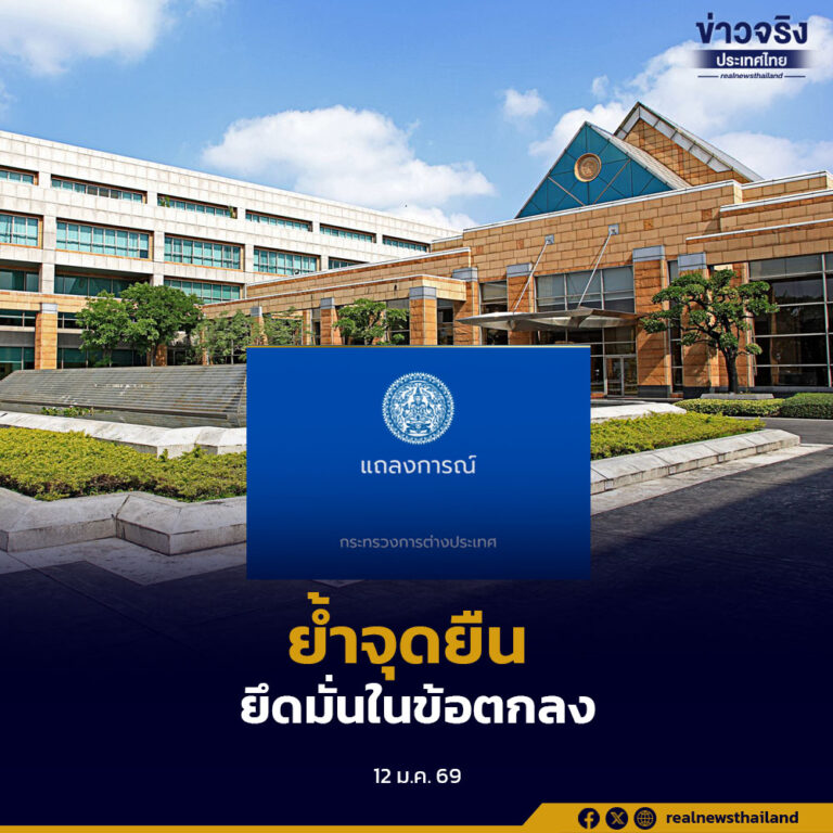 กต.ออกแถลงการณ์ ย้ำจุดยืน ยึดมั่นในข้อตกลงที่มีร่วมกับกัมพูชา พร้อมประท้วงต่อข้อกล่าวหาที่ไม่มีมูลความจริง 12 มกราคม 2026 อ่านต่อ ...