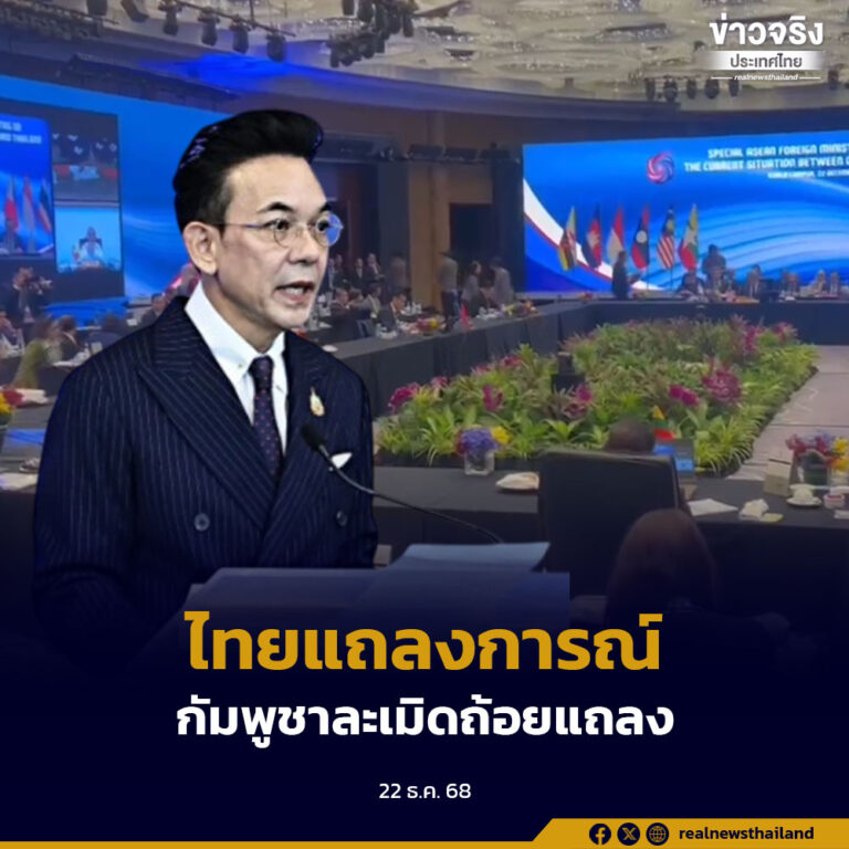 ประชุม รมต.ต่างประเทศอาเซียนสมัยพิเศษ จุดยืน 3 ข้อ กัมพูชาต้องประกาศหยุดยิงก่อน 19 ธันวาคม 2025 อ่านต่อ ...