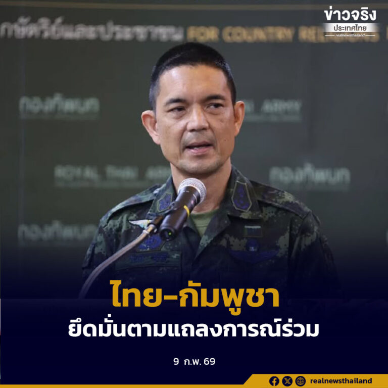 โฆษกกองทัพบก ยืนยันสถานการณ์ชายแดนไทย – กัมพูชา หลังหยุดยิง 1 เดือนยังคงสงบ ยึดมั่นตามแถลงการณ์ร่วม 9 กุมภาพันธ์ 2026 อ่านต่อ ...