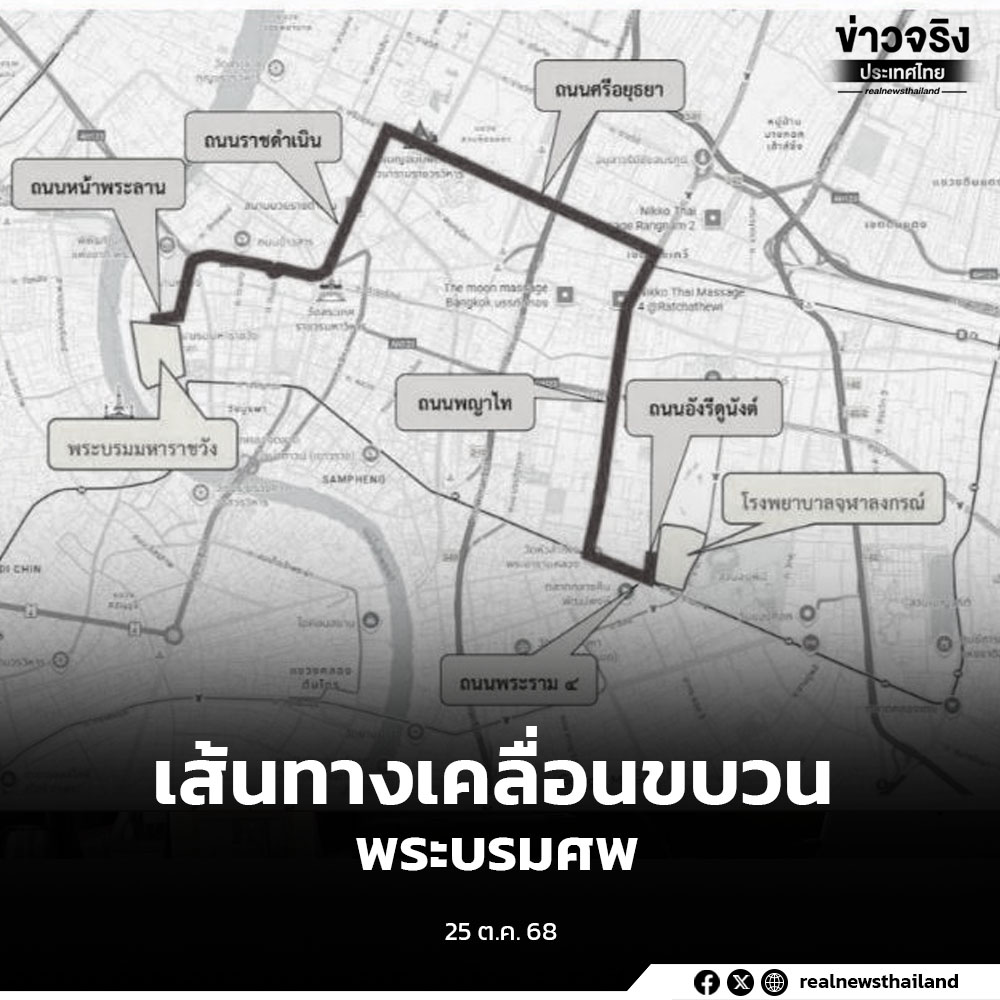 กองบัญชาการตำรวจนครบาล แจ้งเส้นทางเคลื่อนขบวนพระบรมศพสมเด็จพระนางเจ้าสิริกิติ์ พระบรมราชินีนาถ พระบรมราชชนนีพันปีหลวง