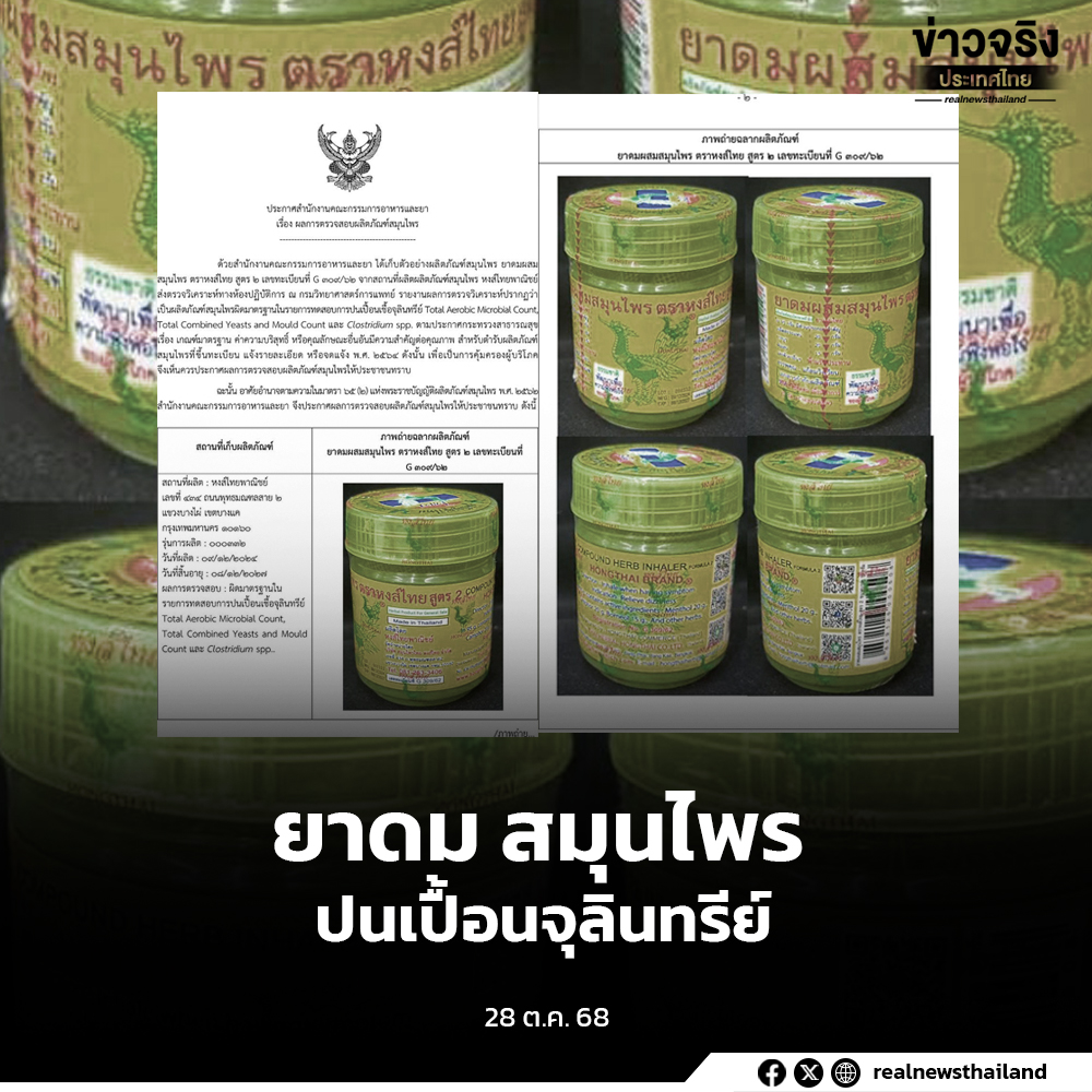 อย.แจ้งผลตรวจยาดมผสมสมุนไพร ตราหงส์ไทย สูตร 2 ปนเปื้อนเชื้อจุลินทรีย์