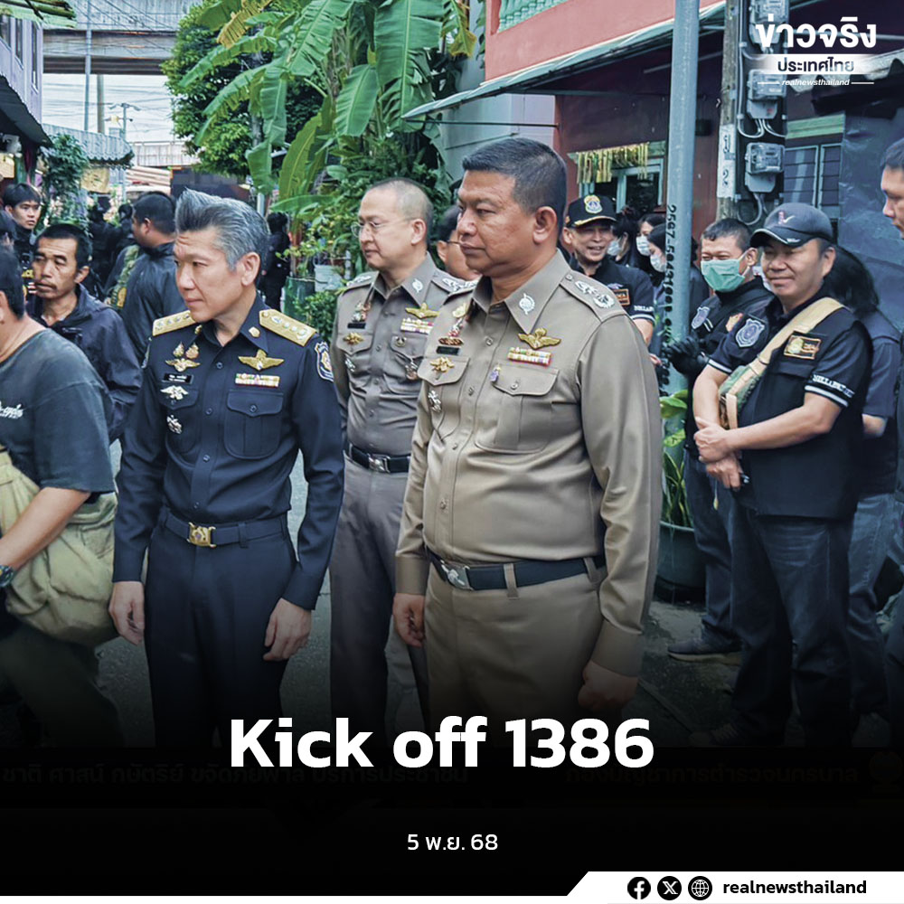 เปิดปฏิบัติการ “Kick off 1386 ที่พึ่งทุกปัญหายาเสพติด” พร้อมระดมกำลังตรวจค้น 21 จังหวัด 161 จุด จับผู้เกี่ยวข้องรวม 39 ราย ส่งบำบัด 23 ราย พบเจ้าหน้าที่รัฐพัวพัน 7 ราย ย้ำเดินหน้าแก้ไขปัญหายาเสพติดอย่างจริงจัง
