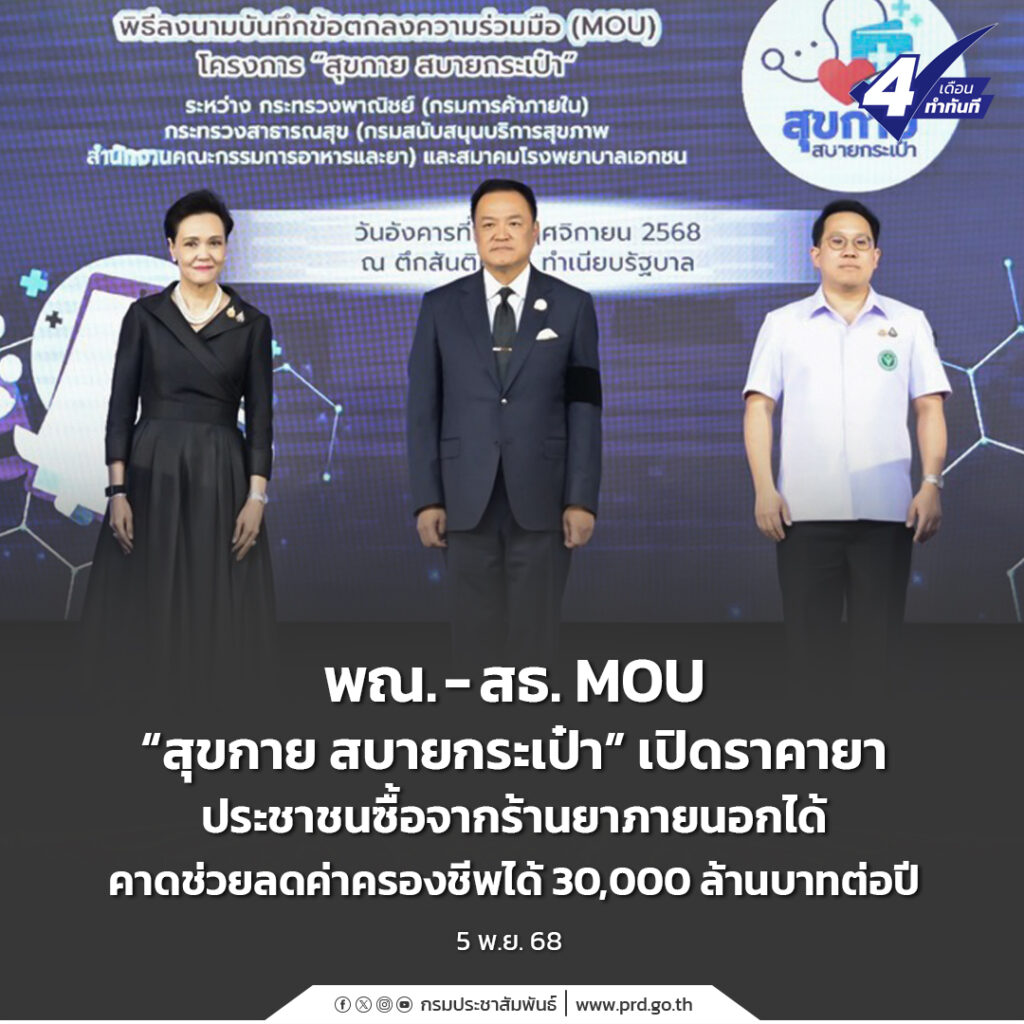 พณ. – สธ. MOU “สุขกาย สบายกระเป๋า” เปิดราคายา ประชาชนซื้อจากร้านยาภายนอกได้ คาดช่วยลดค่าครองชีพได้ 30,000 ล้านบาทต่อปี