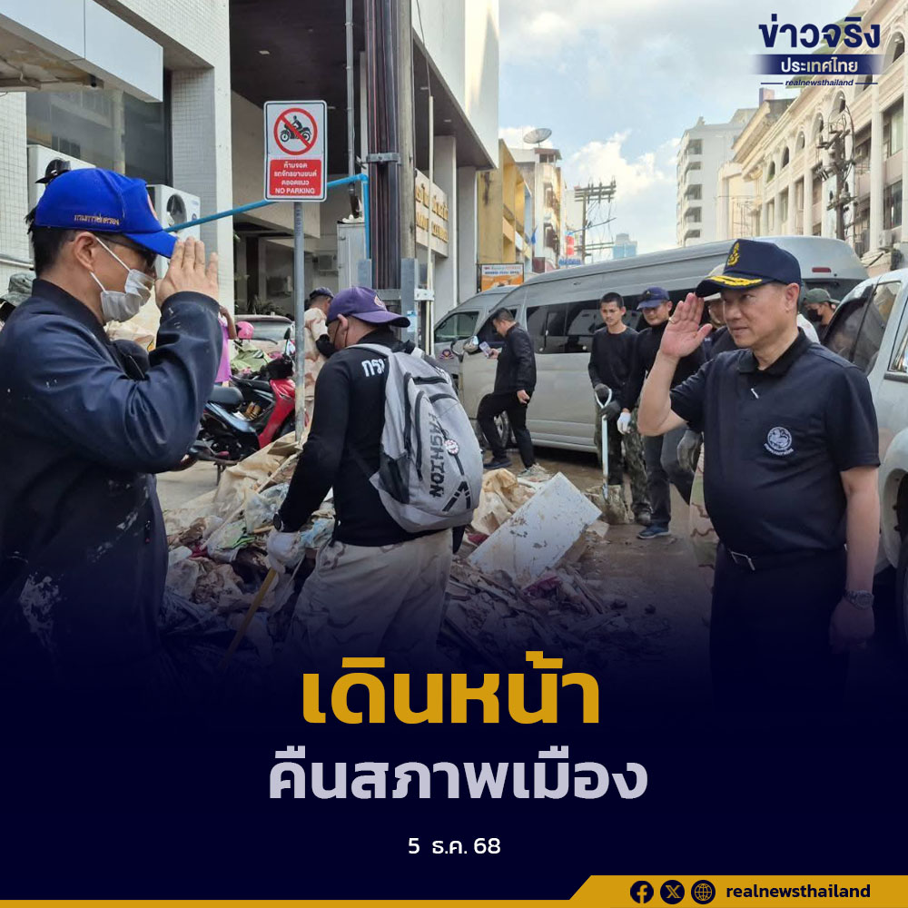 ปลัด มท. ลงพื้นที่ตรวจฟื้นฟูหาดใหญ่–ให้กำลังใจเจ้าหน้าที่ อส. และ ปภ. ที่ปฏิบัติงานตลอด 24 ชั่วโมง เพื่อเร่งคืนสภาพเมืองหลังอุทกภัย