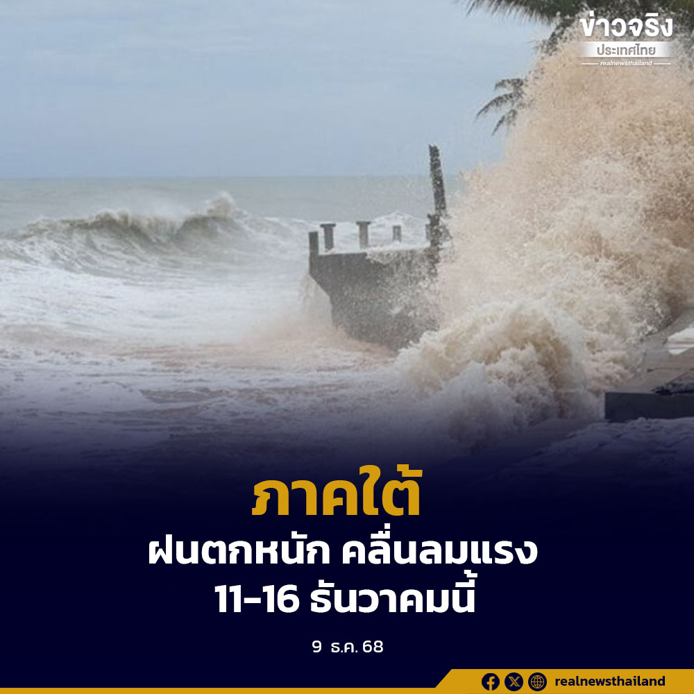 อุตุฯ เตือน ภาคใต้ฝนตกหนัก คลื่นลมแรง 11-16 ธันวาคมนี้ ส่วนตอนบนอากาศแปรปรวนก่อนอุณหภูมิลดลง