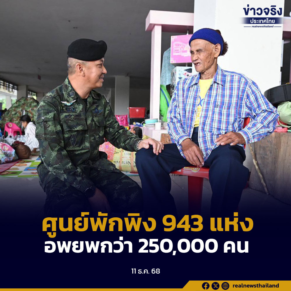 สถานการณ์ชายแดนไทย-กัมพูชา จัดตั้งศูนย์พักพิงแล้ว 943 แห่ง ประชาชนอพยพกว่า 250,000 คน