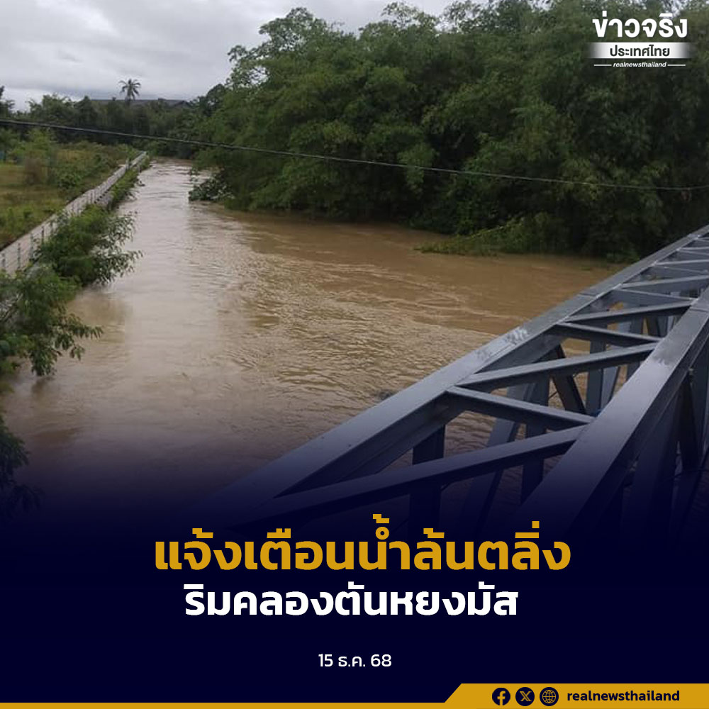 ปภ.ส่ง Cell Broadcast แจ้งเตือนน้ำล้นตลิ่ง พื้นที่ลุ่มต่ำริมคลองตันหยงมัส อำเภอระแงะ อำเภอเมือง อำเภอยี่งอ