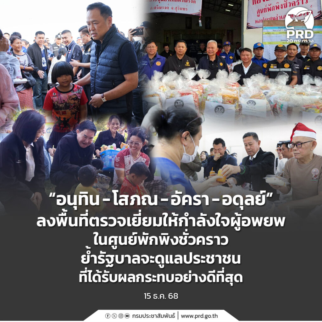 “อนุทิน – โสภณ – อัครา – อดุลย์” ลงพื้นที่ตรวจเยี่ยมให้กำลังใจผู้อพยพในศูนย์พักพิงชั่วคราว ย้ำรัฐบาลจะดูแลประชาชนที่ได้รับผลกระทบอย่างดีที่สุด