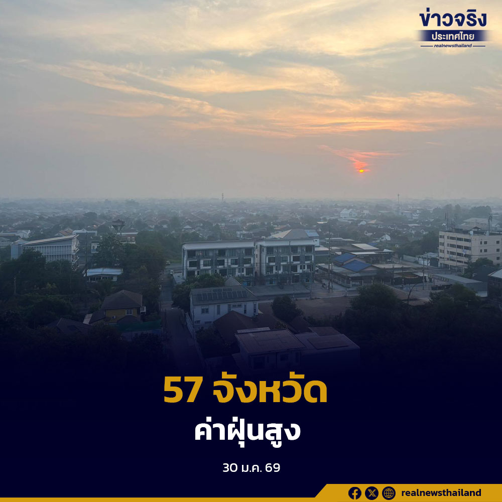57 จังหวัด ค่าฝุ่นสูงและสูงมาก ส่วน กทม. PM2.5 สูงต่อเนื่อง 34 เขต