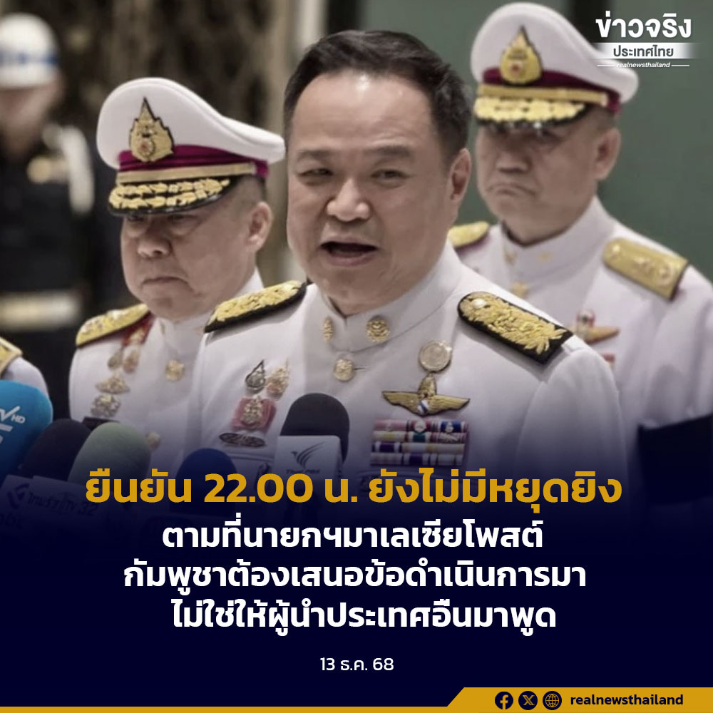 ยืนยัน 22.00 น. ยังไม่มีหยุดยิง ตามที่นายกฯมาเลเซียโพสต์ กัมพูชาต้องเสนอข้อดำเนินการมา ไม่ใช่ให้ผู้นำประเทศอื่นมาพูด