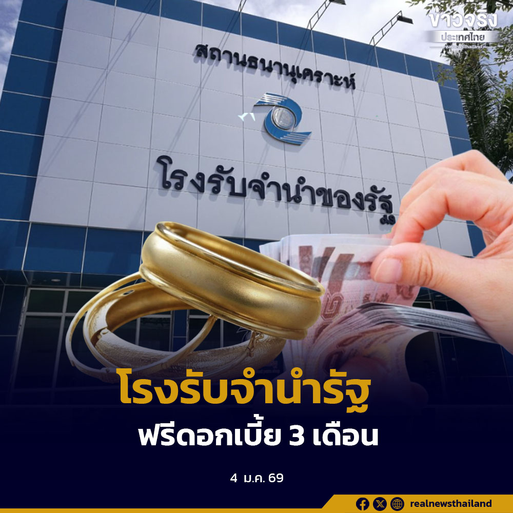 โรงรับจำนำรัฐ ฟรีดอกเบี้ย 3 เดือน วงเงินไม่เกิน 5,000 บาท จนถึงวันที่ 31 มกราคมนี้ เพิ่มสภาพคล่องให้กับประชาชน