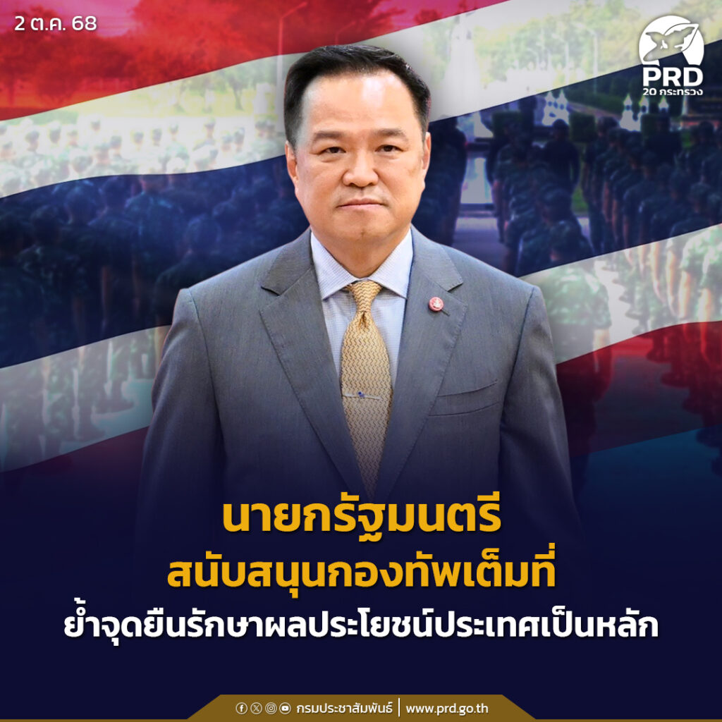 นายกรัฐมนตรี สนับสนุนกองทัพเต็มที่ ย้ำจุดยืนรักษาผลประโยชน์ประเทศเป็นหลัก